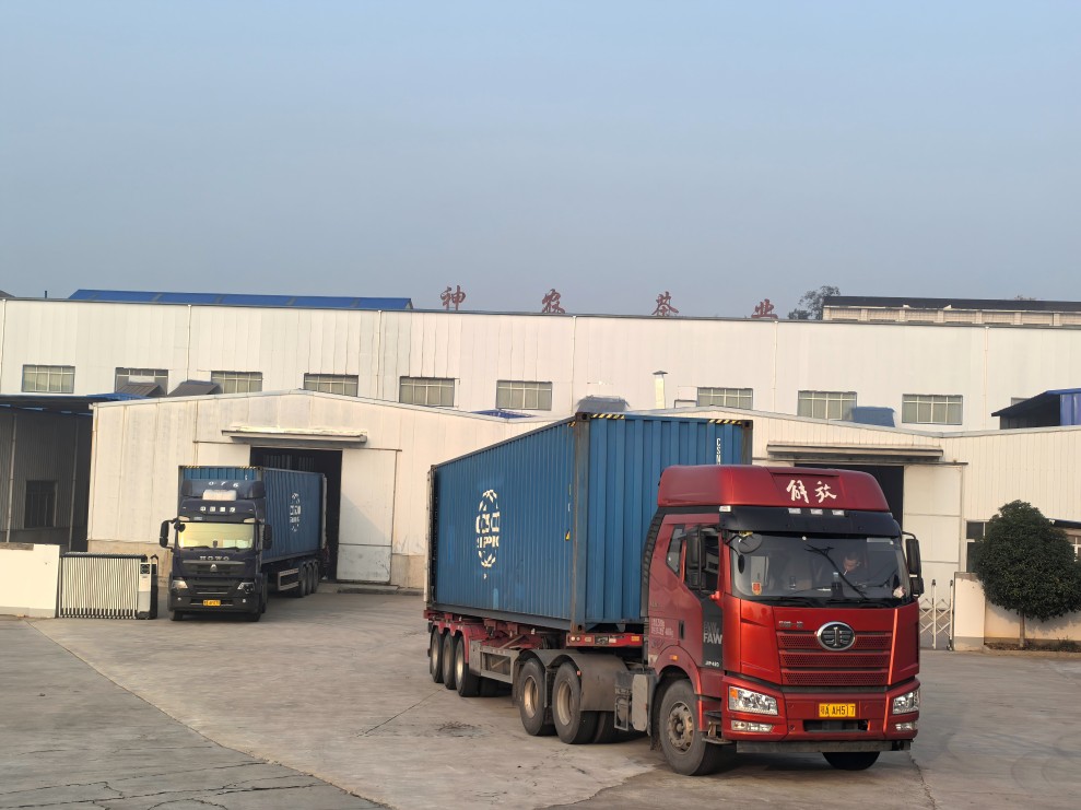10月28日清晨,秋意正濃,茶山云霧繚繞,美不勝收。兩輛裝滿神農(nóng)有機(jī)綠片茶的集裝箱車輛緩緩從進(jìn)出口公司的成品倉庫內(nèi)駛出,這些茶葉將飄洋過海到達(dá)德國漢堡。