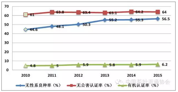 圖3 “十二五”期間我國(guó)茶園良種化與認(rèn)證情況