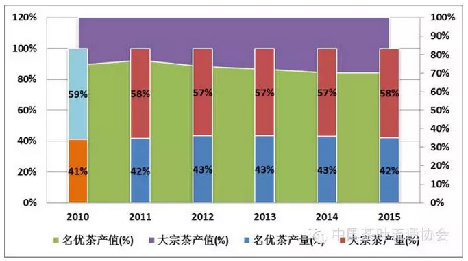 圖5 “十二五”期間我國(guó)大宗茶與名優(yōu)茶結(jié)構(gòu)變化