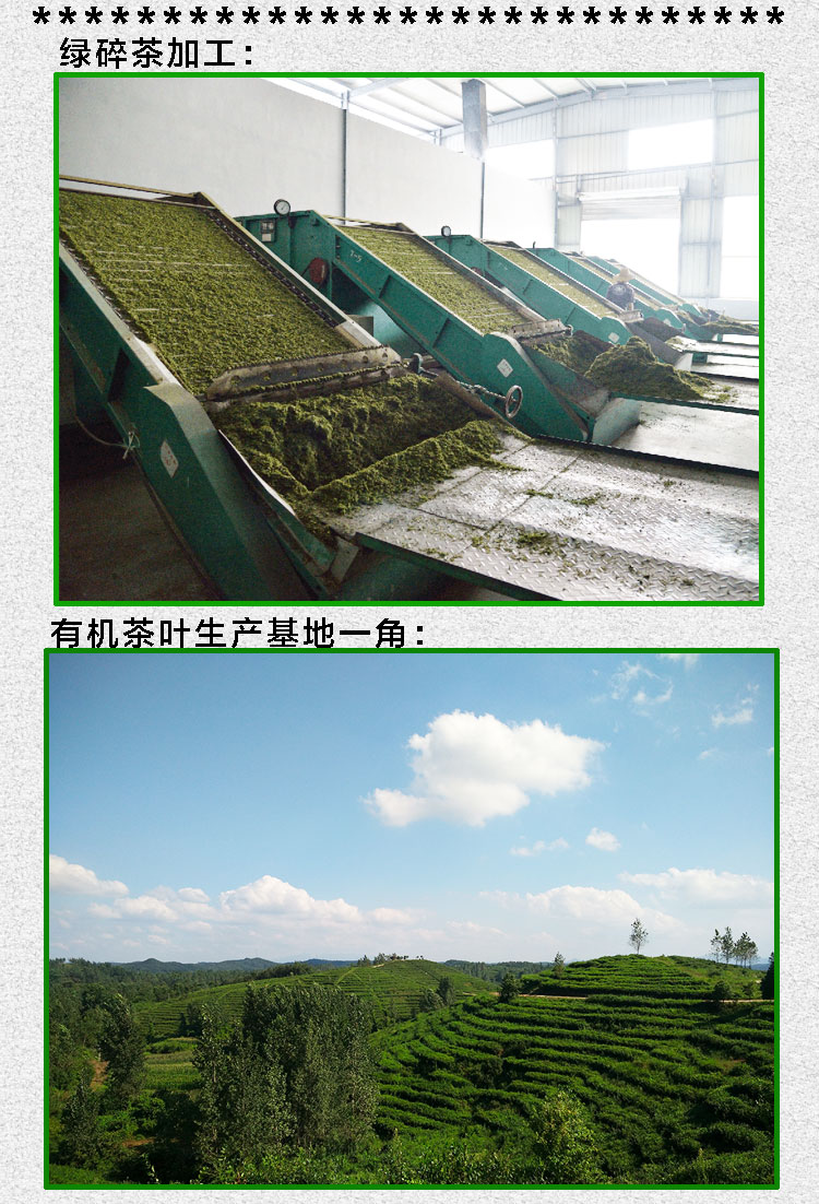 其特點是: 外形呈沙粒形顆粒狀、色澤綠潤、湯色鮮綠明亮、栗香持久、滋味濃醇。通過權(quán)威機構(gòu)檢測四百多項沒有農(nóng)藥殘留,理化衛(wèi)生指標均符合歐盟、美國、日本等有機食品要求標準,是各種保健茶、袋泡茶理想的茶葉原料。該產(chǎn)品可分為:有機、低農(nóng)、國標三種,具體價格可在線咨詢!